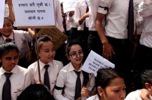उनीहरु बलात्कारपछि हत्याको शिकार भएकी कञ्चनपुरकी १३ वर्षीया बालिका निर्मला पन्तको पक्षमा न्याय र दोषीलाई कारबाहीको माग गर्दै शुक्रबार प्रदर्शन गरिरहेका छन्।
